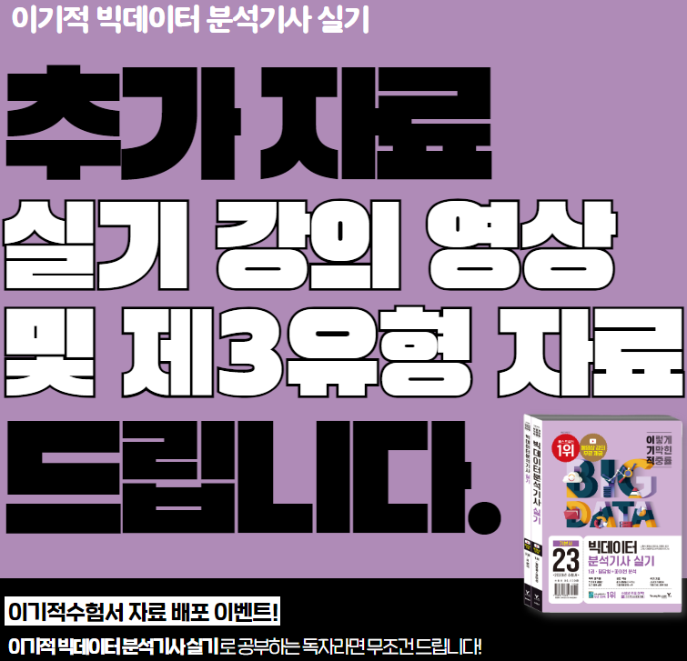 영진닷컴에서도 해당 유형을 반영한 수험서는 출간예정인 "2024 이기적 빅데이터분석기사 실기 기본서" 부터 적용될 것으로 보입니다.