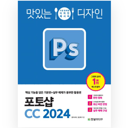한빛미디어에서 출판된 "맛있는 디자인 포토샵 CC 2024"가 제일 눈에 들어오던군요.