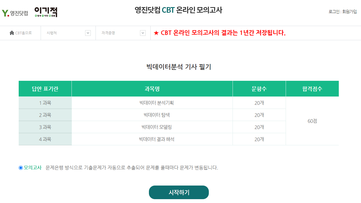 2년전 ADSP 자격증 취득 후, 작년에 비슷한 내용의 빅데이터분석기사 6회 필기에 합격했습니다.